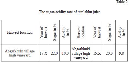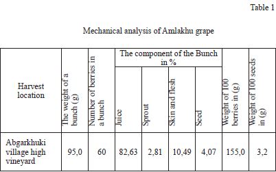 AMLAKHU Amlakhu is a red grape, lightly-spread Abkhazian vine type; from its grapes we make high quality golden-pink table wine. Among the local vine-growers and in special vine-growing Literature, Amlakhu is known variably as: Achkik, Achkirk (V. Cherniavski, 16), and also as Amlaxuji, but in this case in error as this latter is grown in the village of Abgarkhuk, but is black-grained and different from real pink Amlakhu. For this reason it was also called Shavi Amlakhu. Amlakhu is a local old-type of vine. It originates from Kolkheti’s cultural vine types. With its morphological and agricultural features, Amlakhu belongs to the ecological-geographic group of the Black Sea (proles pontica, subpr. Georgica Negr). It stands closer to Abkhazian vinetypes, more correctly, it is their typical representative. We do not have any information about the time of its origin. According to academician Iv. Javakhishvili, we do not have any information about Georgian agricultural history before the period of the 13th century. But the fact that Amlakhu was well known from the 18th century gives us the basis to think that it is an older type of vine. In the history of agriculture, Amlakhu was first mentioned by V.Cherniavski, K.Madjavariani and others. In their work is given a short description of the type and characterization of its production, wine and grape. Different authors differently explain the origin of the type. K. Madjavariani, maybe because of the similarity of the words, considers that Amlakhu was taken from Amilakhvars. This consideration does not conform to reality because Amilakhvars’ vineyards were located mainly in Kartli, and a late type, such as Amlakhu, would not be able to ripen in the Kartli environment and so it could not be spread there. Linguistic analysis of the name can give us a clearer answer about the origin of the type. The name “Amlakhu”, according to the explanation of the academician S. Janashia, is an Abkhazian word which means “hungry meal” in Georgian. Perhaps Amlakhu bore such large and sugary bunches, that its one bunch was quite enough to satisfy a hungry man. It is obvious that not only the bunch of Amlakhu has such character, but in this case, more important is that the origin of this name is local, that gave us basis to consider it as a locally-originated old-type like other Abkhazian types. It should be mentioned here that several different types of vine are known as baring the name of Amlakhu, such as: Pink Amlakhu-female with flowers, Pink Amlakhu- hermaphroditic with flowers, and Shavi Amlakhu. A more complete description is given in the work of Professor T. Kvaratskelia, where he remarks that Amlakhu is spread in the form of some roots in the mountainous part of Gudauta. Its flower is functionally female. Bunches are long, quite dense, cylindrical or cone-cylindrical. Grains are middle-sized, oval, and dark pink. V. Cherniavski characterizes Amlakhu in the following way: “It is a notably Abkahzian type; lightly spread. Its berry is large and round; we make from it an excellent golden-pink wine.” Amlakhu is planted in the 171st row of the ampelographical collection of the Institute of Viticulture and Enology. It was received from the collection vineyard of “Magarachi” (Crimea), where- in the distant past - more than 12 vine types were brought and cultivated, among them Amlakhu and Apapniji from Abkhazia. Amlakhu was imported from Crimea, but in old times exported from Abkhazia. It is a typical Abkhazian type in its morphological and agricultural characteristics, and is mostly similar to the Amlakhu that was described in Gudauta by Professor T. Kvaratskhelia, only different from it in its hermaphroditic-type flower. As regards Shavi Amlakhu, it is very different from Pink Amlakhu. In old times it was grown in the village of Abgarkhuk but is now cultivated in vine-growing base of the village of Akhalsopeli as several roots. Shavi Amlakhu is so different from the Pink that it has nothing in common except its name and that it is very much similar to the type of Atseiji. Thus, we should find out which Amlakhu is the original; the one described by Professor T. Kvaratskhelia or the one cultivated in the collection vineyard of the Institute. These two types are extremely similar to each other. They have almost identical downiness of flower, size and shape of bunch, and size and color of grain. They are mainly different from each other in the shape of flower and grain. According to Professor T. Kvaratskhelia, it is oval, but according to V. Cherniavski it is round. By our observation we find berries of both shapes, but large berries are mostly oval in shape. We consider that, especially during pruning in high formation when in the period of blossoming, cross-pollination is difficult because of frequent rainfall and so it would be difficult to select the female type of Amalkhua for wide industrial spreading. On the other hand, the two existing similar types, different only in their flower type, makes it permissible to cultivate them together. Thus we can admit that Amlakhu consisted of two similar types- a mixture of female and hermaphroditic. Such mixtures were more frequent in old vineyards than in pure-varieties plantations. This is in accordance with V. Cherniavski, who gave instruction that Amlakhu wine was not made of only one type of grape. Because of this, the female Amlakhu will be elaborated upon and characterized and the hermaphroditic Amlakhu will be briefly described according to observations in Kakheti. To restore the Kolkhis type, historically known as a sparkling wine, it is necessary to cultivate together two types of vine named Amlakhu, to separate them from each other during harvest and to test the quality of the wine both separately and together, with various relativity, to establish the quantitative relativity of real Amlakhu and its components. According to T. Kvaratskhelia and K. Machavariani, Amlakhu was widespread in Abkhaz